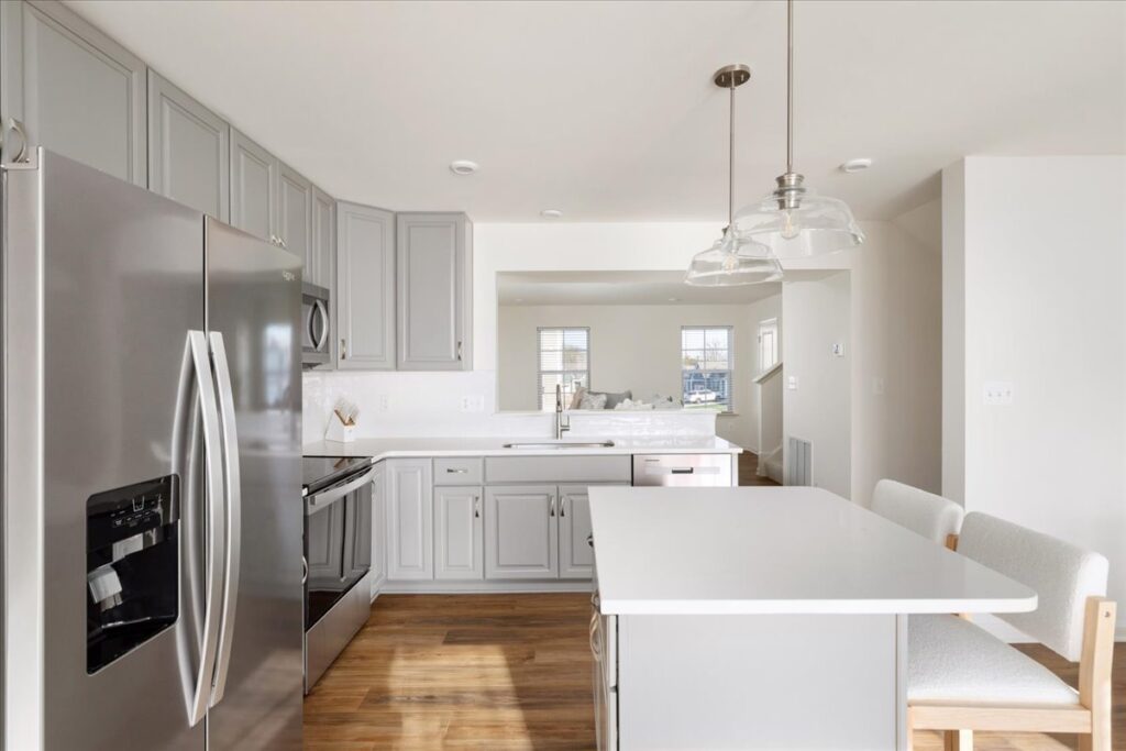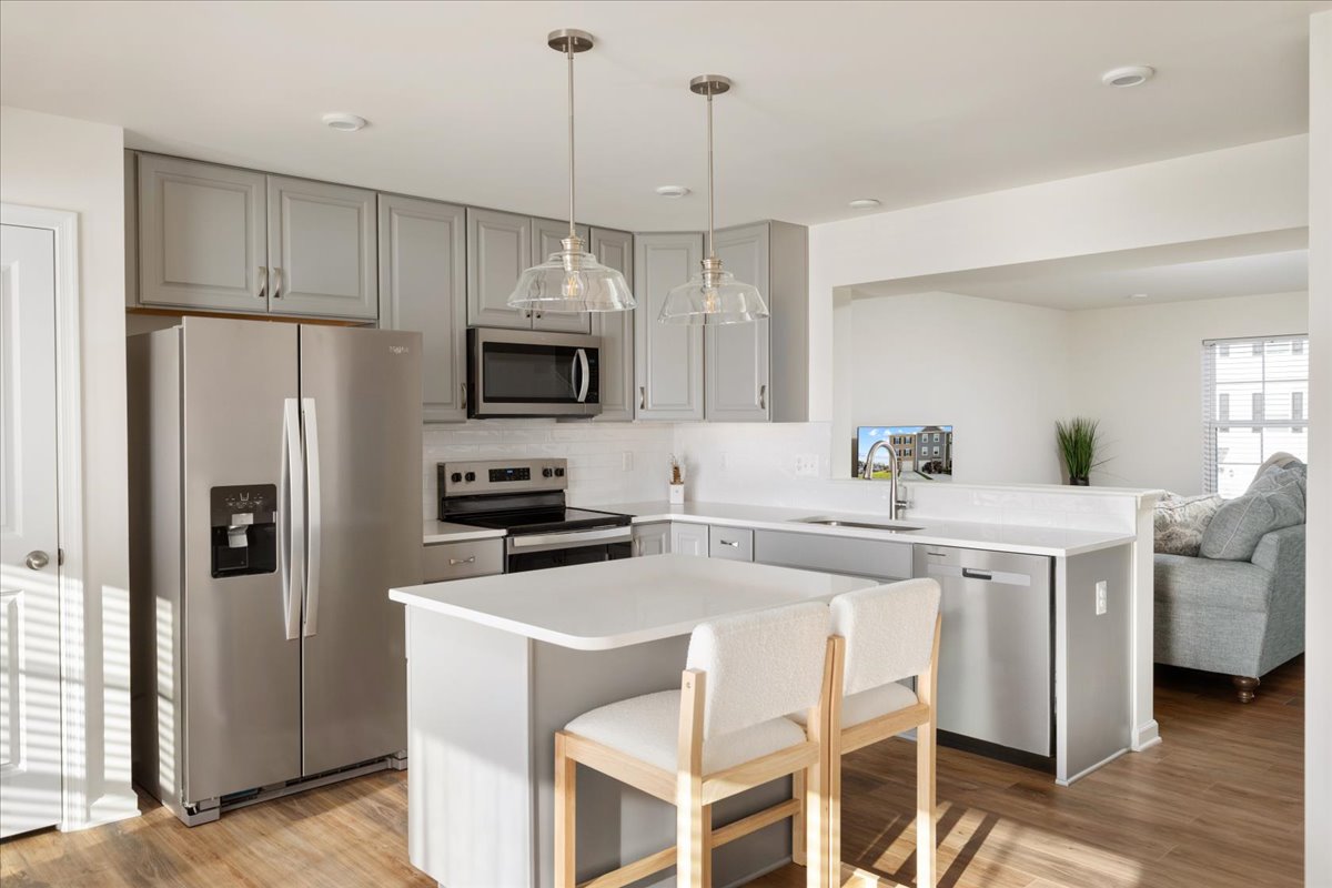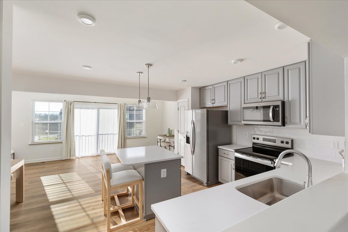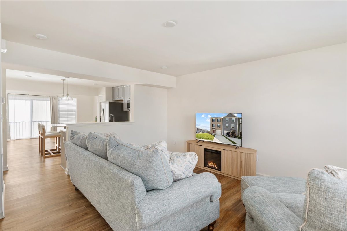 Welcome to this stunning 3 bedroom, 3.5 bathroom 2025-built end unit townhome in Falling Waters, WV. With 2,175 square feet of living space spread across three finished levels, this home is move-in ready and loaded with upgrades. The main level features a family room, open kitchen and dining area, and an 8-foot sunroom bump-out. The kitchen offers upgraded 42″ cabinetry, quartz countertops, a center island with pendant lighting, a single bowl undermount sink, and Whirlpool stainless steel appliances including a French door refrigerator. A half bath completes the main level. The spacious primary suite offers a walk-in closet, soaking tub, and separate shower. Two additional bedrooms, a full bath, and a laundry area round out the upper level. Ceiling fan pre-wires are in place in the bedrooms and family room. The lower level features a versatile recreation and bonus room with a full bathroom. A one car garage with garage door opener provides convenient access from the lower level. The neighborhood features sidewalks, a tot lot, basketball court, tennis court, and a dog park area. The HOA takes care of lawn maintenance so you can enjoy a low-maintenance lifestyle. Ideally located near major commuter routes for easy access to Maryland and beyond. Schedule your tour today!