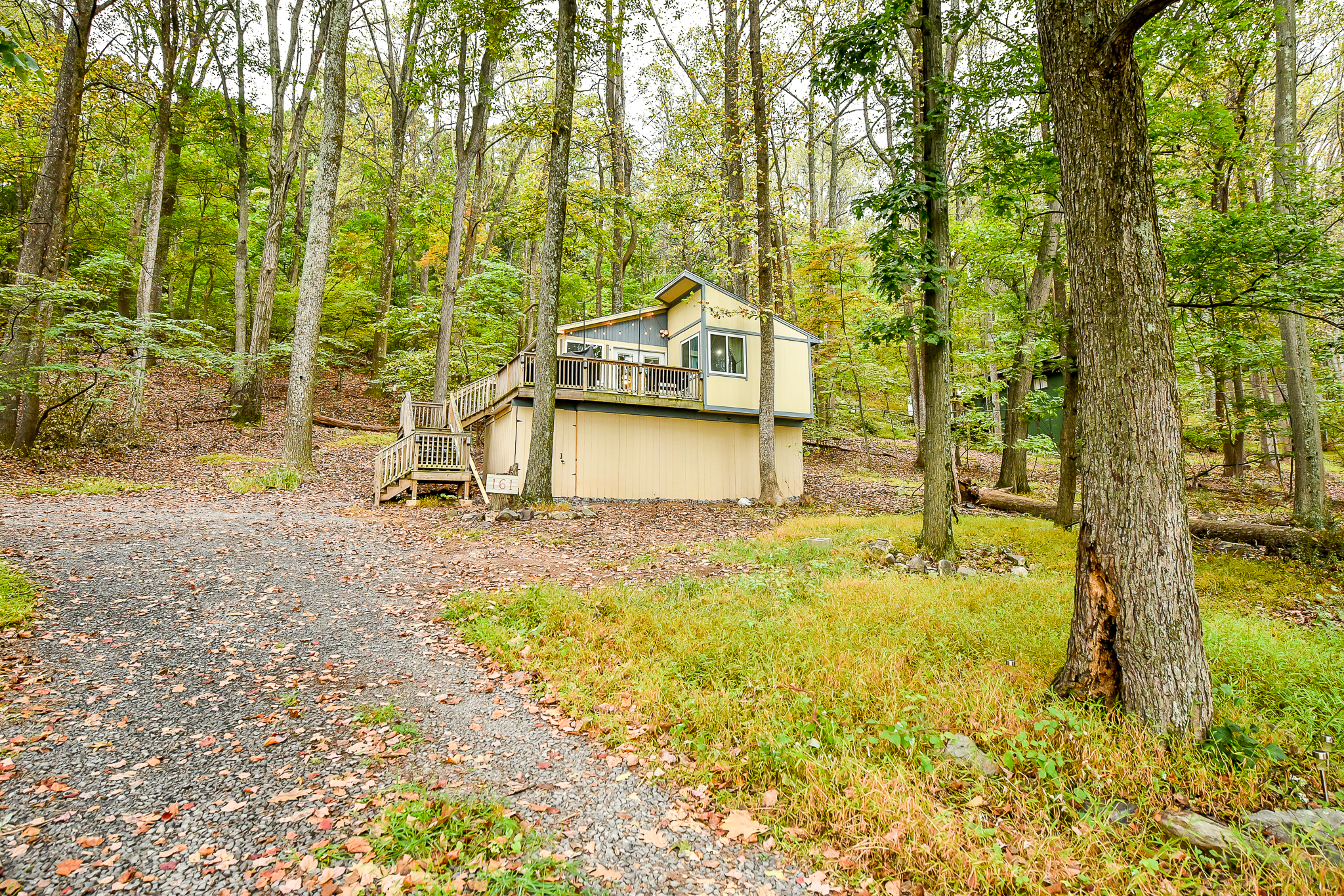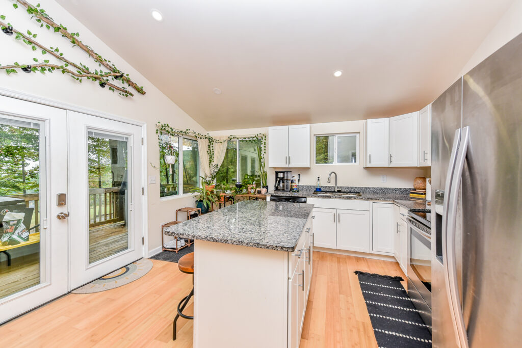 | This lovely cabin, situated on a 1.5-acre lot bordering the Sleepy Creek Wildlife Management Area in the Eastern Panhandle, offers privacy and outdoor enjoyment. The community includes a private lake with a beach, swimming pier, and picnic area. The 2-bedroom, 1-bath property has been thoughtfully updated. The kitchen features white shaker cabinetry, granite countertops, stainless steel appliances, and a kitchen island. An open floor plan with vaulted ceilings and recessed lighting creates a bright, airy living space. French doors open to a spacious deck with scenic views, the perfect spot for morning coffee. Features include updated windows, bamboo flooring, and 200-amp electrical service. Storage under the home provides additional convenience. Schedule your showing today! |