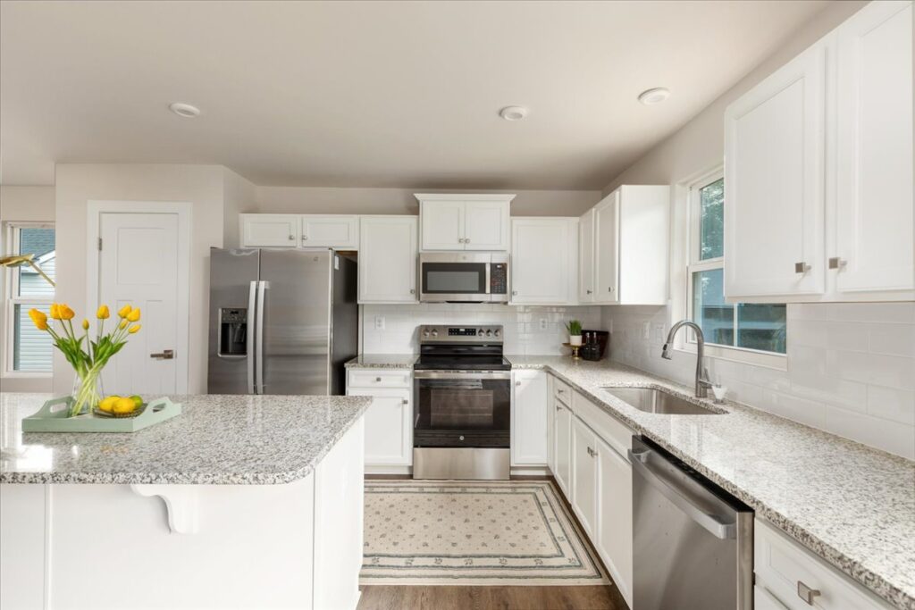 Welcome to 638 Makers Way, a gorgeous ranch-style home that’s less than a year old and move-in ready! This home offers a spacious open-concept layout with 4 bedrooms, 3 full bathrooms, and a fully finished basement, providing both functionality and room to grow. The kitchen is designed for everyday comfort and entertaining, featuring a large island, plentiful cabinetry, granite countertops, stainless steel appliances, a tile backsplash, and a pantry, with an adjoining dining area. The family room opens seamlessly to the kitchen, creating a connected space that’s perfect for gathering or relaxing. The main level laundry room includes a utility sink for added convenience. The primary suite is located at the rear of the home and offers a walk-in closet and a full bath with dual vanities, tile flooring, and a tiled shower. Two additional bedrooms and a second full bath are located at the front of the home. The finished walk-out basement adds even more versatility with a large recreation room, an additional bedroom, a full bathroom, and a generous storage room, ideal for hobbies, guests, or extended living space. Additional highlights include a 2-car garage equipped with an electric car charger, recessed lighting throughout, and an Ecobee smart thermostat for energy-efficient comfort. If you’re looking for modern design, low-maintenance features, and a home that’s truly move-in ready, 638 Makers Way checks all the boxes. Schedule your showing today!
