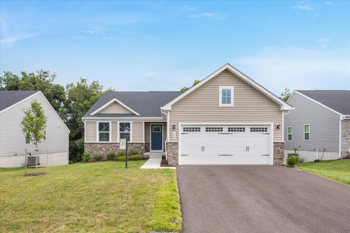 Welcome to 638 Makers Way, a gorgeous ranch-style home that’s less than a year old and move-in ready! This home offers a spacious open-concept layout with 4 bedrooms, 3 full bathrooms, and a fully finished basement, providing both functionality and room to grow. The kitchen is designed for everyday comfort and entertaining, featuring a large island, plentiful cabinetry, granite countertops, stainless steel appliances, a tile backsplash, and a pantry, with an adjoining dining area. The family room opens seamlessly to the kitchen, creating a connected space that’s perfect for gathering or relaxing. The main level laundry room includes a utility sink for added convenience. The primary suite is located at the rear of the home and offers a walk-in closet and a full bath with dual vanities, tile flooring, and a tiled shower. Two additional bedrooms and a second full bath are located at the front of the home. The finished walk-out basement adds even more versatility with a large recreation room, an additional bedroom, a full bathroom, and a generous storage room, ideal for hobbies, guests, or extended living space. Additional highlights include a 2-car garage equipped with an electric car charger, recessed lighting throughout, and an Ecobee smart thermostat for energy-efficient comfort. If you’re looking for modern design, low-maintenance features, and a home that’s truly move-in ready, 638 Makers Way checks all the boxes. Schedule your showing today!